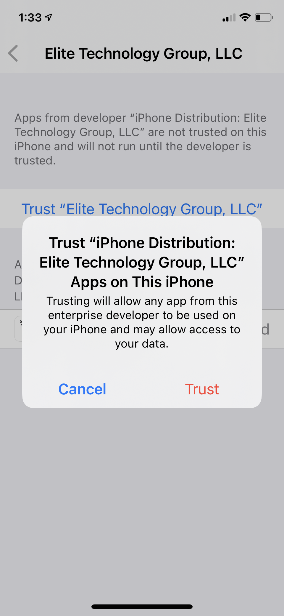 After installing the application from this download link, you must “trust” the developer before using the app.